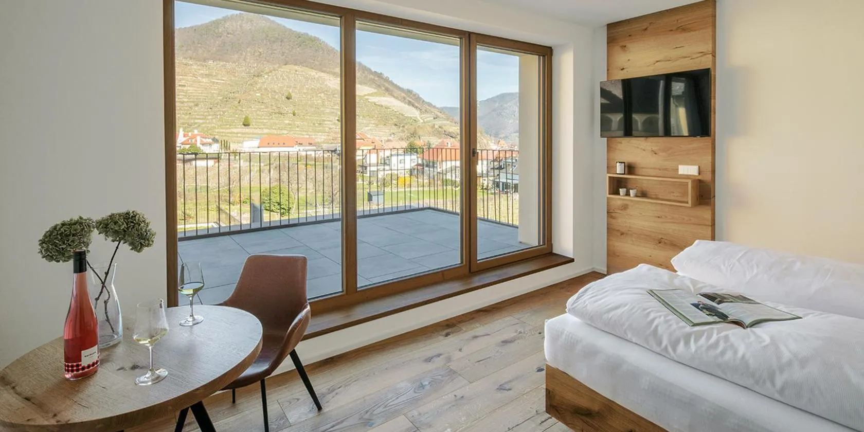 Vinum.Lodge Spitz in der Wachau, que cuenta con vistas a la montaña, dispone de alojamiento con jardín y balcón a unos 20 km de Abadía Melk.
