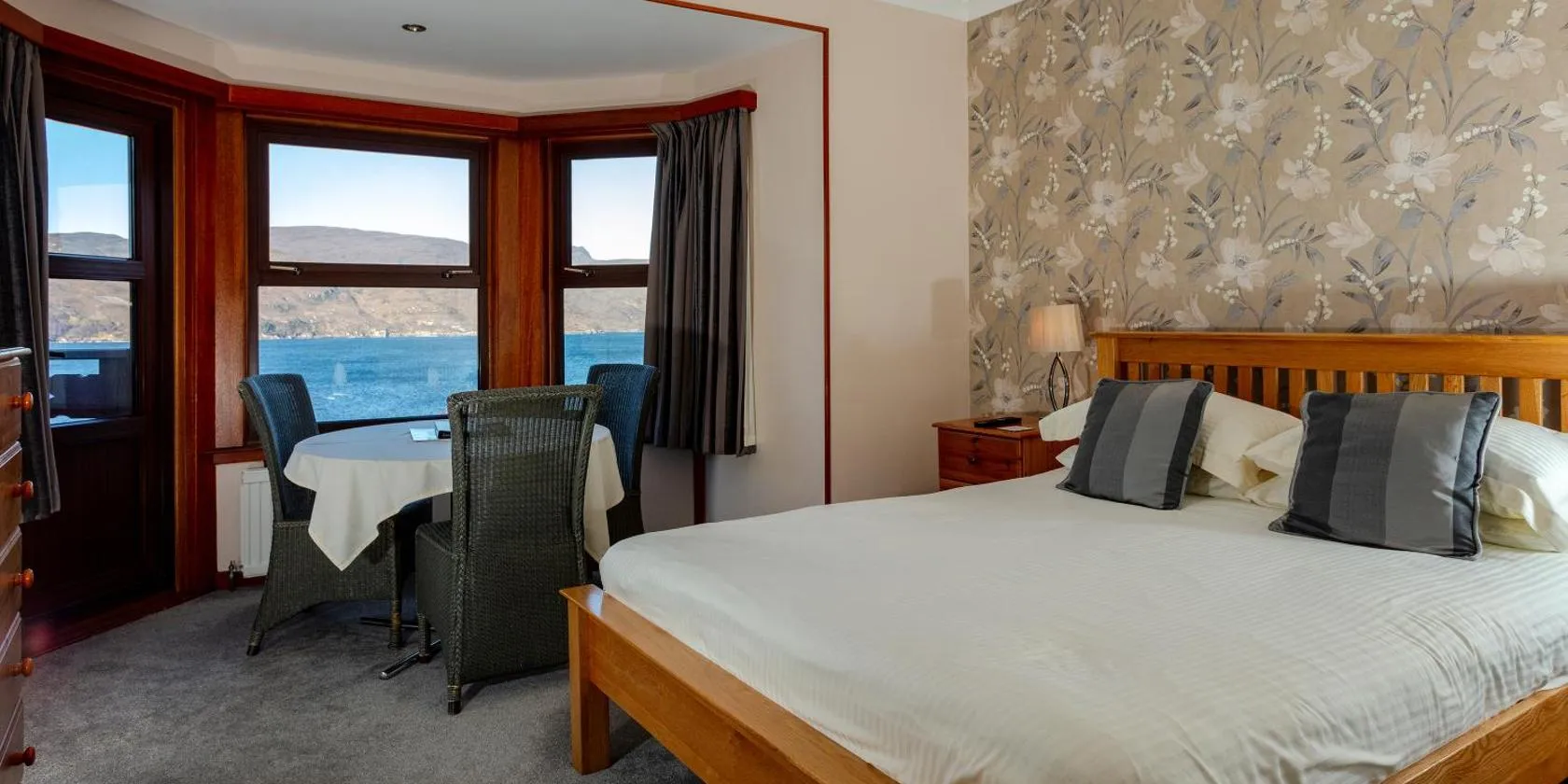 Enjoying stunning loch views, The Ferry Boat Inn in Ullapool offers en suite rooms in the Scottish Highlands.