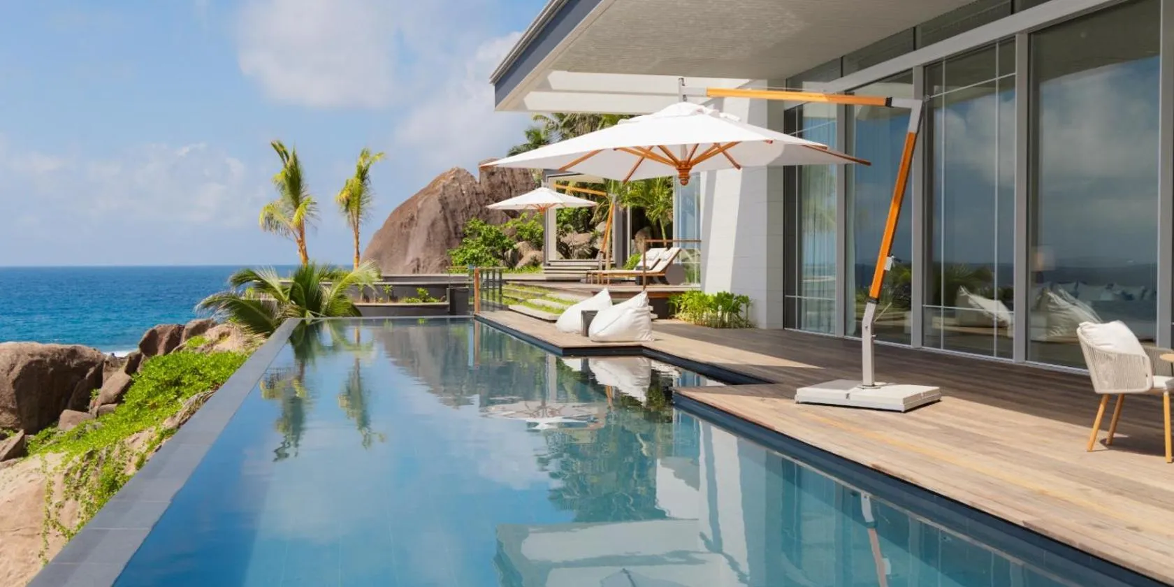 This luxurious resort on Mahe features air-conditioned villas overlooking the Indian Ocean. Anantara Maia Seychelles Villas features a gourmet restaurant and a wellness centre.