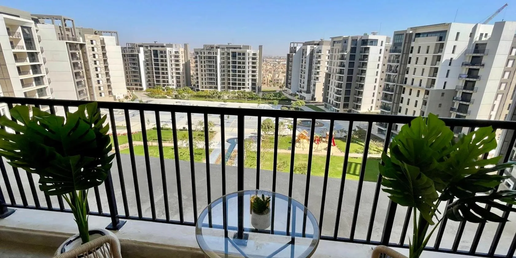 كمبوند ذا ادرس بالشيخ زايد, que está en Sheikh Zayed, ofrece alojamiento con piscina privada, vistas al jardín y balcón.