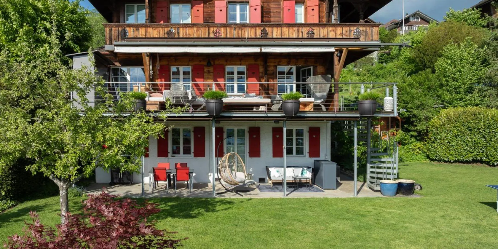 Vu sur le lac et les neiges éternelle, que cuenta con terraza, dispone de alojamiento en Thun con wifi gratis y vistas al jardín.