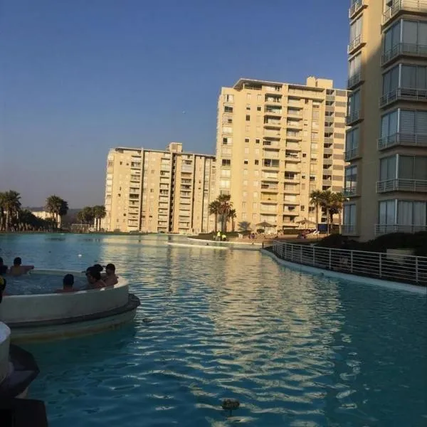Depto en Costa Algarrobo Norte con wifi, que cuenta con piscina al aire libre, centro de fitness y terraza, ofrece alojamiento en Algarrobo con wifi gratis y vistas al jardín.