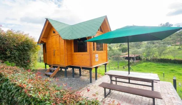Featuring garden views, Cabaña de Lujo en la Naturaleza 10 min del Centro features accommodation with a garden, a bar and barbecue facilities, around 49 km from Villa de Leyva Main Square.