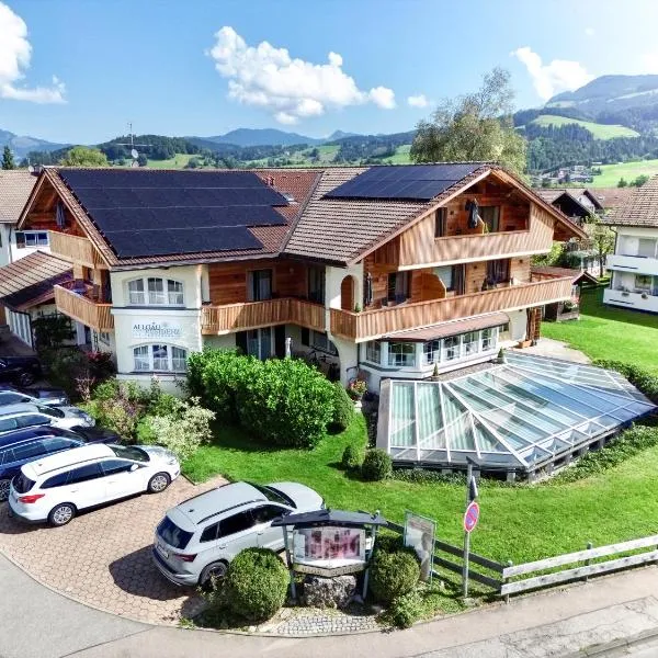 This country-style hotel is located above the scenic Gunzesrieder Tal valley. It provides panoramic views of the Allgäu mountains and a free spa area with indoor pool.