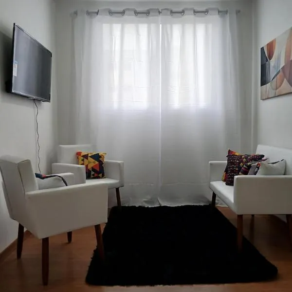 Το Ap Completo vista para rua ArCond WiFi Piscina προσφέρει δωρεάν WiFi, κλιματισμό, εξωτερική πισίνα και κήπο.