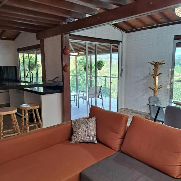 Apto/cabaña naranja, que cuenta con vistas a la montaña, dispone de alojamiento con balcón y cafetera, y está a unos 20 km de Estadio Hernán Ramírez Villegas.