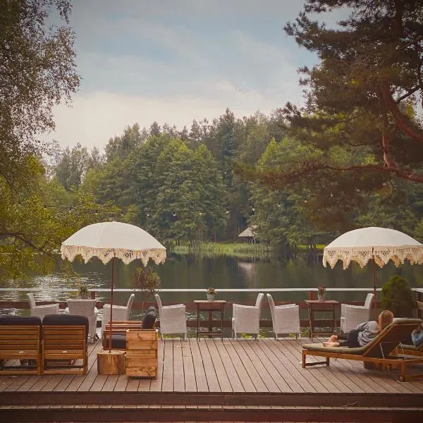 Set in Soesaare in the Põlvamaa region, TaaliHomes Metsamajake - kadakasaun hinnas features a patio and lake views. This beachfront property offers access to a terrace and free private parking.