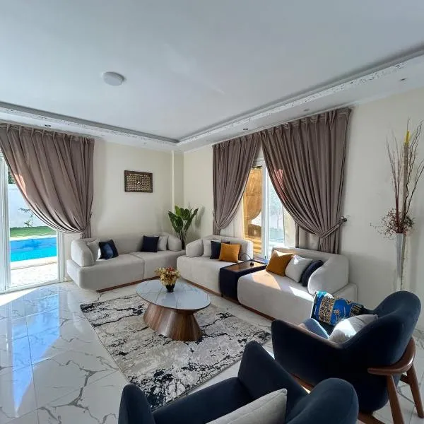 Το Vilaria King mariot fully air conditioned villa فيلاريا كنج مريوط فيلا مكيفه بالكامل βρίσκεται στην Αλεξάνδρεια και προσφέρει δωρεάν WiFi και θέα στην πισίνα.