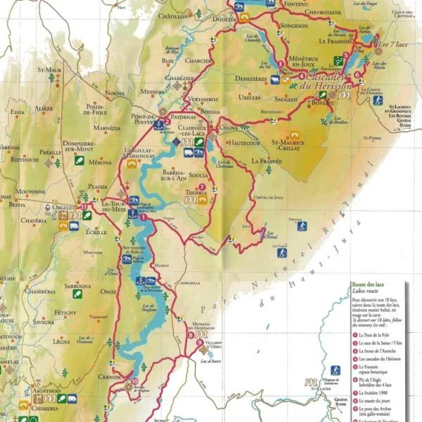 Το Les Rives de l'Ain που προσφέρει βεράντα, μπαρ και εστιατόριο, είναι σε Pont-de-Poitte. Το κατάλυμα προσφέρει δωρεάν WiFi και απέχει περίπου 15 χλμ από Lac de Chalain.