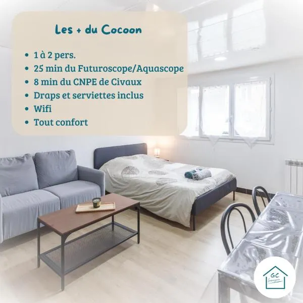 LE COCON - T1 - 26 m2 is situated in Lhommaizé, 4.3 km from DéfiPlanet', 7.8 km from Crocodiles Planet, and 19 km from Mignaloux-Beauvoir Golf Course.
