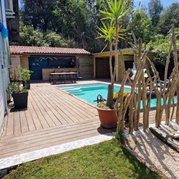 Σε απόσταση μόλις 2,7 χλμ από Παραλία Plage d'Ondres, το Maison entre forêt et océan - piscine et tennis βρίσκεται σε Ondres και διαθέτει με εποχική εξωτερική πισίνα, γήπεδο τένις και κοινόχρηστη...
