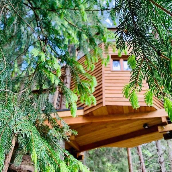 Cabane dans les Arbres de Valmo'Insolite, que tiene vistas a la montaña, dispone de alojamiento con jardín, terraza y bar a unos 39 km de Halle Olympique d'Albertville.