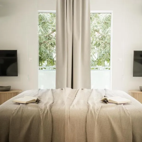 Το Ennea suites- Dark suite βρίσκεται σε Flámbouras και προσφέρει δωρεάν WiFi και θέα στην πόλη. Έχει επίσης εξωτερική πισίνα, κήπο και βεράντα.