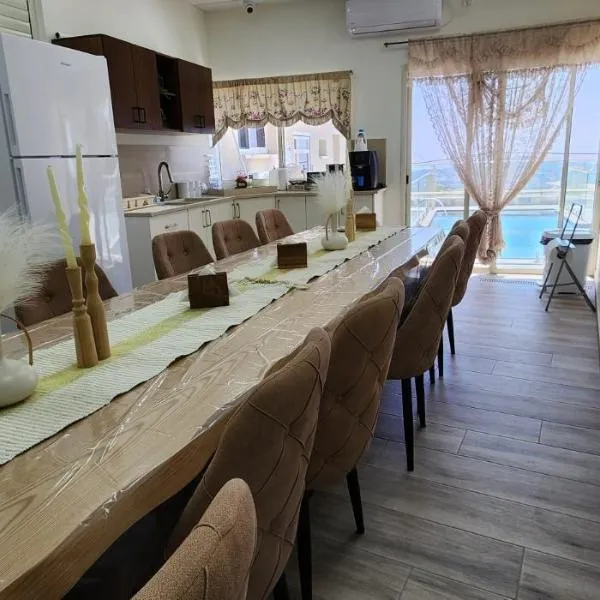 Το אחוזת מצפה שני הימים-וילת 7 חדרים עם בריכה מחוממת וג'קוזי ספא διαθέτει δωρεάν WiFi, κλιματισμό, κήπο και βεράντα.
