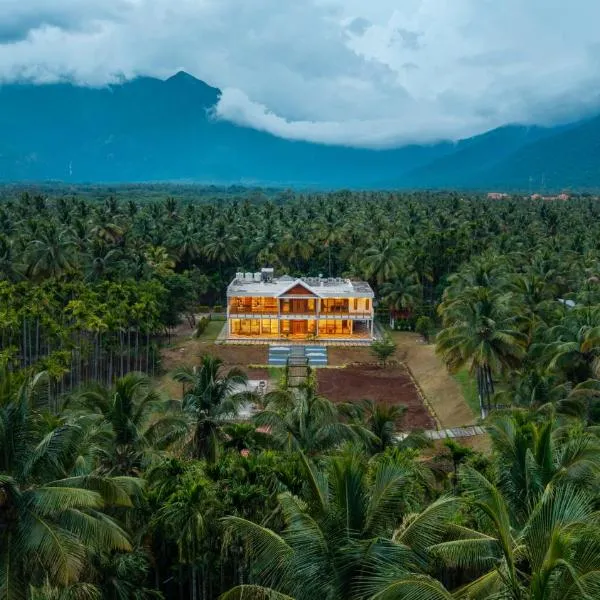 Situated in Coimbatore, within 30 km of Podanur Junction, Palms & Peace - A Serene getaway with hill view By Shivalaya is an accommodation offering garden views.