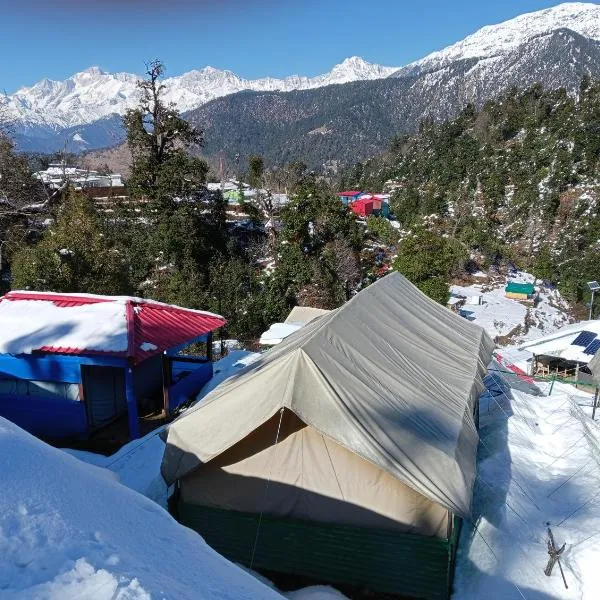 Το Camping at Serene Chopta διαθέτει κήπο και βρίσκεται σε Sari σε Uttarakhand. Στον χώρο του καταλύματος παρέχεται ιδιωτικός χώρος στάθμευσης. Το μπάνιο περιλαμβάνει ντους.