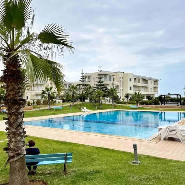 Lumineux appartement, que cuenta con piscina de temporada al aire libre, jardín y zona de playa privada, ofrece alojamiento en Bouznika con wifi gratis y vistas a la piscina.