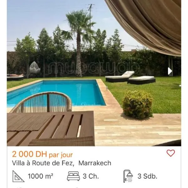 Το مراكش είναι στην περιοχή Palmeraie του προορισμού Μαρακές και έχει κλιματισμό, μπαλκόνι και θέα στον κήπο. Αυτό το κατάλυμα προσφέρει ιδιωτική πισίνα και δωρεάν ιδιωτικό χώρο στάθμευσης.