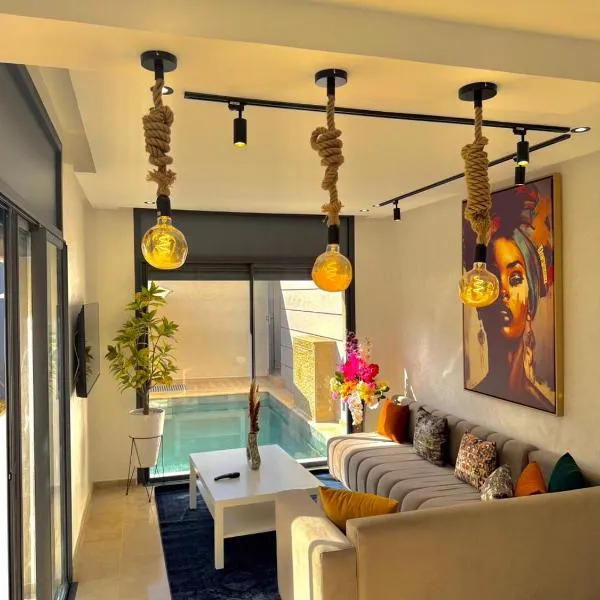 Το Trendy apartment two bedrooms, το οποίο βρίσκεται σε Oulad Mbark, προσφέρει κήπο, εξωτερική πισίνα και θέα στον κήπο.