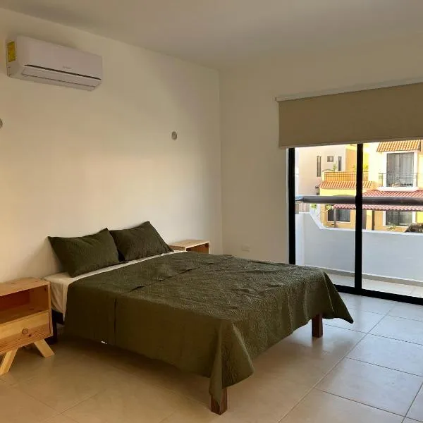 Το Bonita Casa Vacacional. Punto medio entre ciudad y playa, που προσφέρει δωρεάν WiFi, κλιματισμό, κήπο και βεράντα, βρίσκεται σε Mérida.