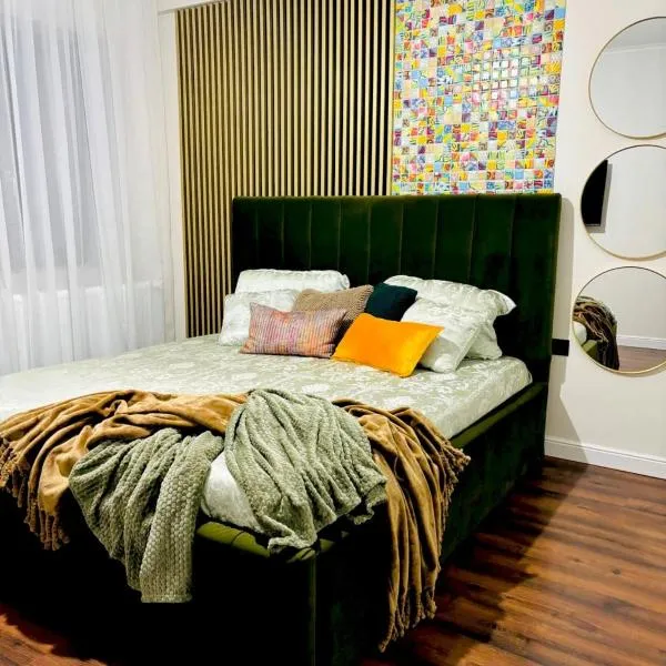 Povi Residence ligt in Lugoj. Het appartement heeft een balkon, 1 slaapkamer, een woonkamer en een goed uitgeruste keuken met een koelkast en een magnetron.