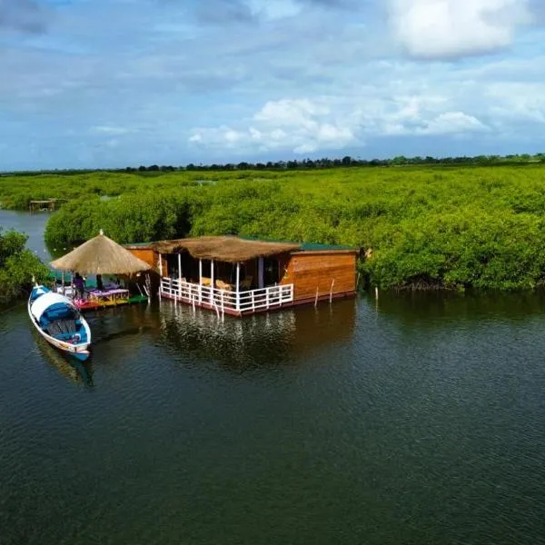 Το Maison flottante SWEET MALBALY - chambre double - vue imprenable sur mer- iles du saloum παρέχει καταλύματα σε Fatick με θέα στη θάλασσα και έχει εξωτερική πισίνα, ιδιωτική παραλία, κοινόχρηστο...