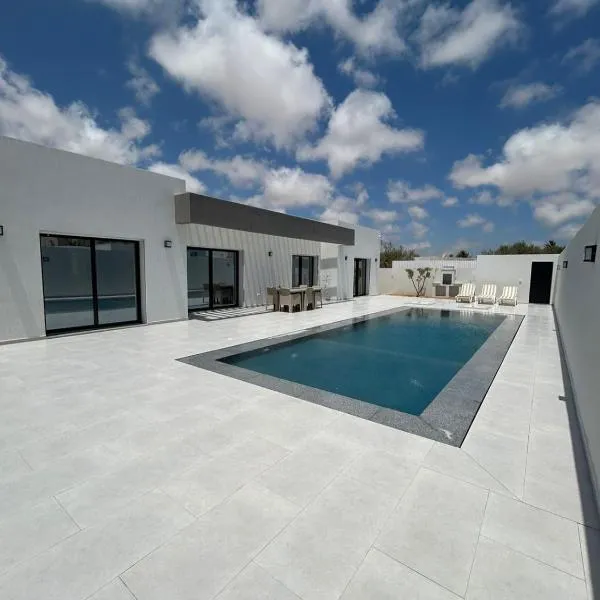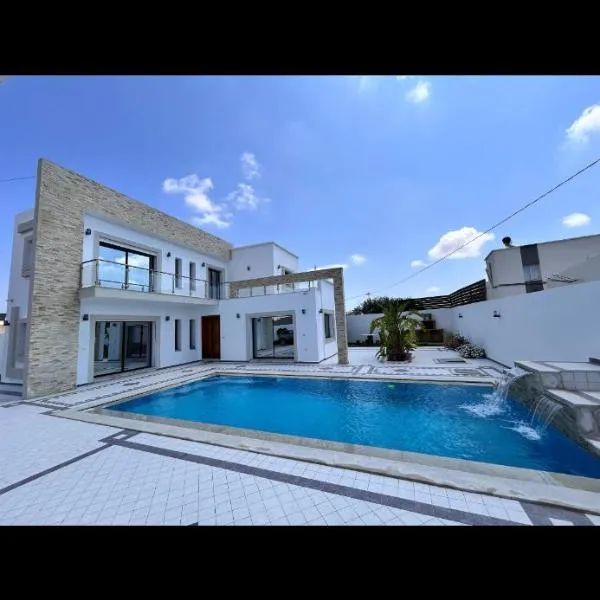 Magnifique villa avec piscine sur l’île de Djerba pour vacances, que tiene piscina al aire libre, jardín y terraza, dispone de alojamiento en Arkou con wifi gratis y vistas a la ciudad.