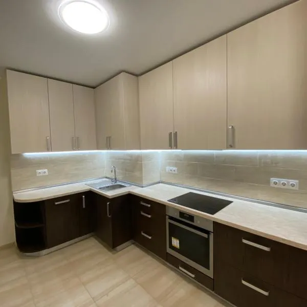 Сучасна та простора квартира в гарному районі міста біля парку se encuentra en Irpín, a 25 km de Monasterio de San Cirilo, a 26 km de Catedral de San Vladimir y a 26 km de Shevchenko Park, y dispone...