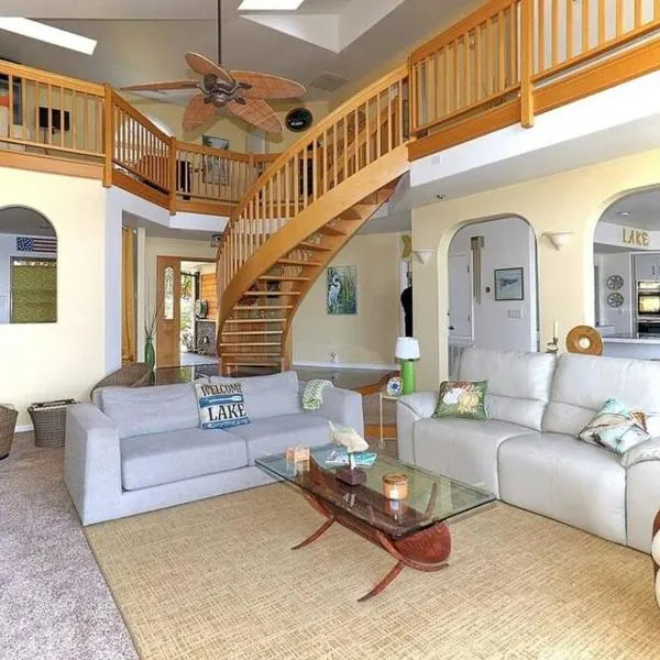 Boasting air-conditioned accommodation with a private pool, lake view and a balcony, Smiling Otter Retreat! Waterfront/pool/spa/games! is situated in Clearlake.