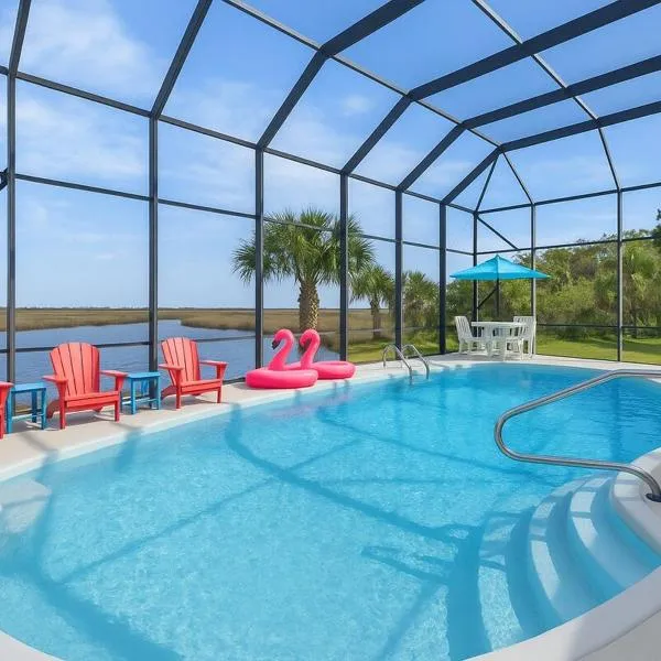 Το 5 Bed 3 Bath Waterfront Pool! Great for families! βρίσκεται σε Hernando Beach. Διαθέτει κήπο, ιδιωτική πισίνα και προσφέρει θέα στον κήπο.
