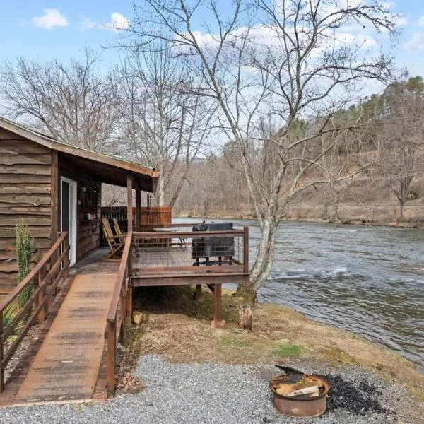 Το Tiny Bearadise - Riverfront Cabin, Deck, Fire Pit & Near the Smoky Mountains! διαθέτει μπαλκόνι και βρίσκεται σε Dillsboro σε Βόρεια Καρολίνα.