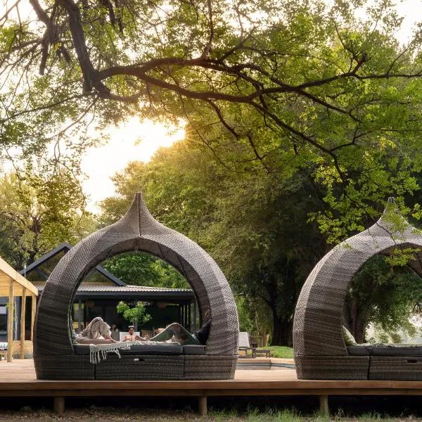 Hideaways Amava River Lodge, Balule, Greater Kruger está en Hoedspruit y cuenta con vistas al río, piscina al aire libre, salón de uso común, terraza y bar.