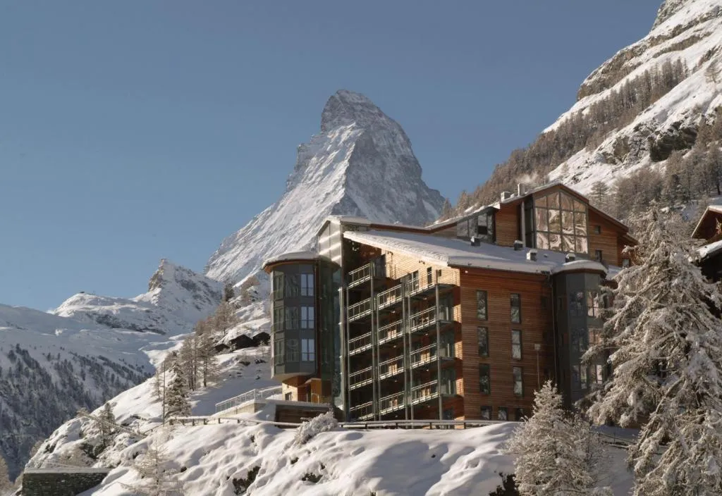 Situated on a rock, 45 metres above the roofs of central Zermatt, guests access The Omnia via a tunnel leading to an elevator, which brings them right into the lobby.