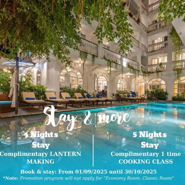 Shining Riverside Hoi An Boutique & Spa has an outdoor swimming pool, fitness centre, a garden and shared lounge in Hoi An. Among the various facilities are a terrace, a restaurant, as well as a bar.