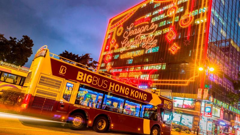 Disfrute de las impresionantes vistas de la península de Kowloon mientras se ilumina por la noche en un recorrido nocturno panorámico de Big Bus de 60 minutos. El tour nocturno se cancelará si no se recibe ninguna reserva antes de las 5:00 p. m.