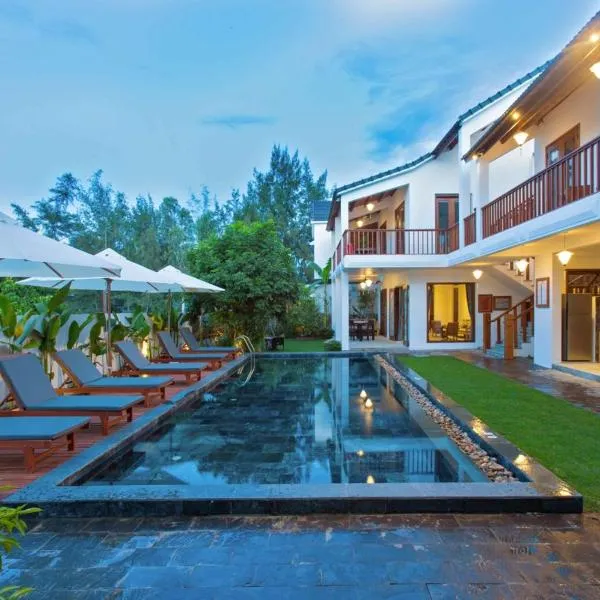 Tan Doan An Bang center beach villas está en An Bang y ofrece alojamiento con piscina al aire libre, jardín y terraza frente a la playa, a 3 min a pie de Playa de An Bang.