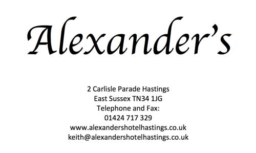 Στο κέντρο της πόλης Χέιστινγκς, λιγότερο από 1,6χλμ. από το κάστρο του Χέιστινγκς, το Alexanders είναι ένα οικογενειακά διοικούμενο ξενοδοχείο με θέα στην ακτή του Σάσεξ. Η ιστορική Παλιά Πόλη βρίσκεται σε κοντινή απόσταση με τα πόδια κατά μήκος της παραλίας. Το Alexanders αποτελεί την ιδανική βάση για να εξερευνήσετε μια από τις παλαιότερες πόλεις της Αγγλίας, φημισμένη για τη Μάχη του Χάστινγκς το 1066. Η High Street απέχει λιγότερο από 1,6 χιλιόμετρα και ο σιδηροδρομικός σταθμός Hastings απέχει 10 λεπτά με τα πόδια από το κτήριο. Τα υπνοδωμάτια στο Alexanders Hotel είναι ζεστά και κομψά σχεδιασμένα, και πολλά έχουν θέα στη θάλασσα. Καθένα διαθέτει τηλεόραση επίπεδης οθόνης και δωρεάν Wi-Fi. Πλήρες αγγλικό πρωινό διατίθεται το πρωί με επιπλέον χρέωση.