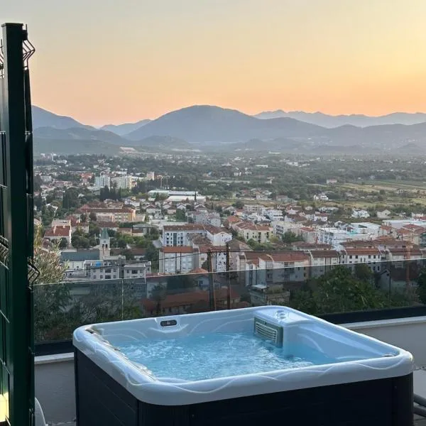 Sky Penthouse Old Bridge with sauna and jacuzzi, que cuenta con vistas al jardín, ofrece alojamiento con terraza y balcón a unos 47 km de Cascada Kravica.