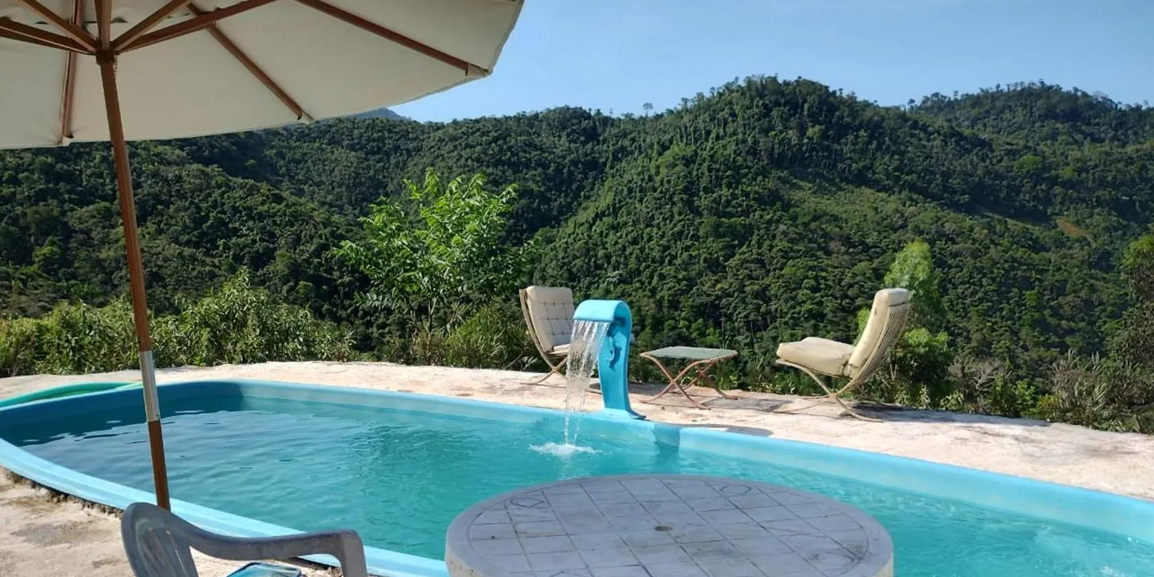 Το Cabana nas Montanhas Capixabas είναι σε Domingos Martins. Έχει κήπο, ιδιωτική πισίνα και προσφέρει θέα στη θάλασσα.