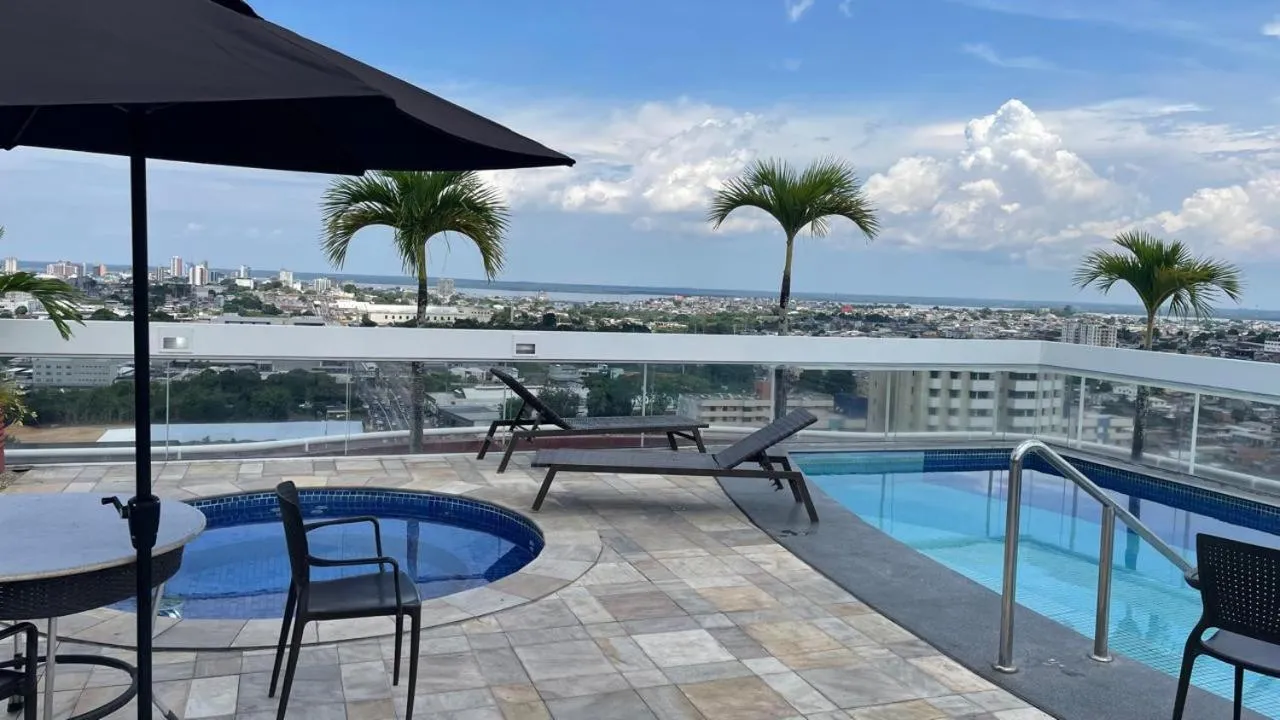Το Flat Aconchegante no Millenium Hotel παρέχει καταλύματα στη Μανάους με θέα στην πόλη και προσφέρει εξωτερική πισίνα, αίθουσα γυμναστικής, κοινόχρηστο χώρο lounge και μπαρ.