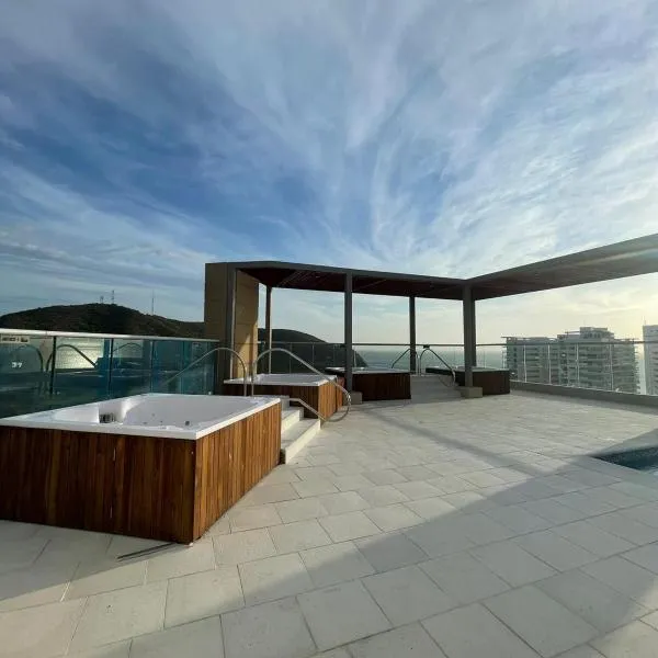 Reserva del Mar 605 se encuentra en Santa Marta y ofrece una terraza con vistas a la ciudad y a la montaña, además de piscina al aire libre, sauna y bañera de hidromasaje.