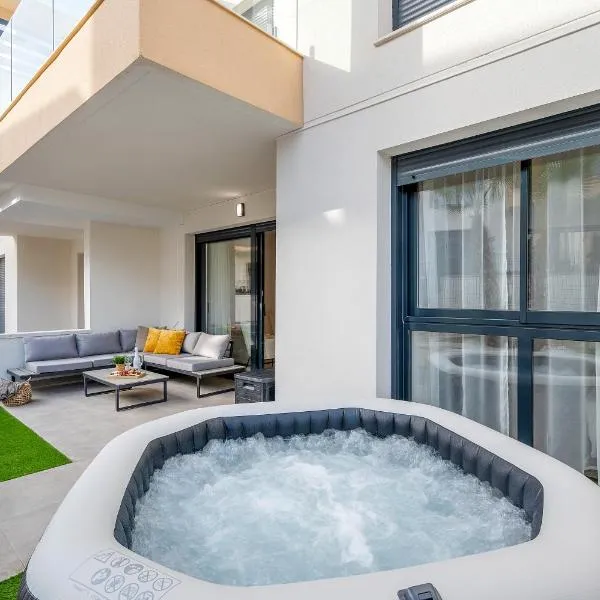 Το Villa with jacuzzi Golf Vistabella, που προσφέρει δωρεάν WiFi, κλιματισμό, κήπο και βεράντα, βρίσκεται σε Οριουέλα.