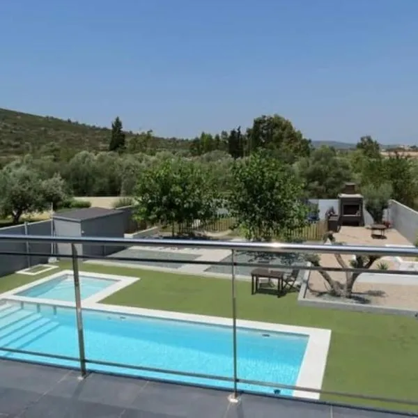 Boasting air-conditioned accommodation with a private pool, pool view and a balcony, Villa Almendros is situated in Peñíscola. This property offers access to a patio and free private parking.