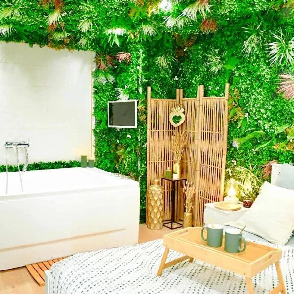 Το Appartement avec Jacuzzi - Climatisation - Parking έχει θέα στον κήπο και προσφέρει κήπο, βεράντα και σπα και κέντρο ευεξίας.