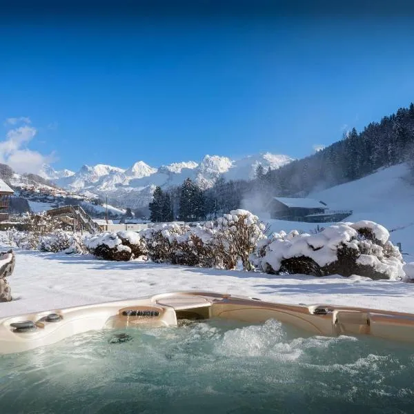 Located 350 metres from the ski slopes in Le Grand-Bornand, this hotel has an outdoor swimming pool, a lounge with a fireplace and a spa with hot tub and sauna.