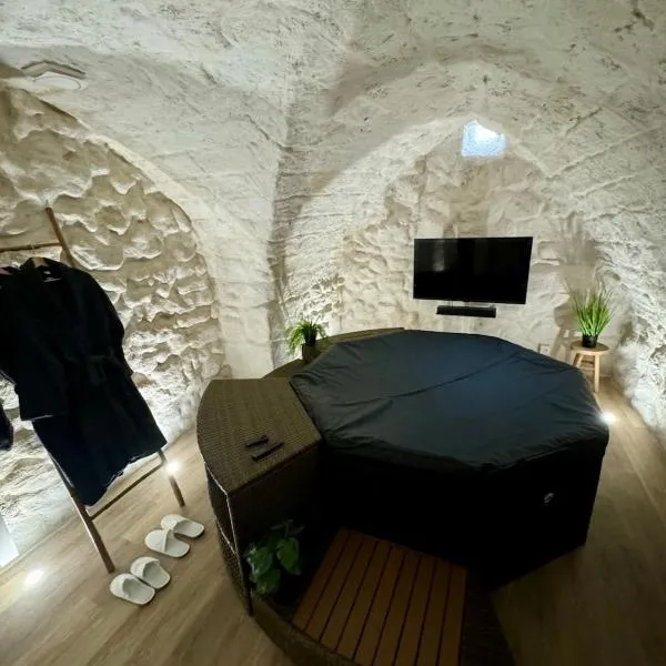 Το Studio cocooning Spa, lit XXL, cour extérieure διαθέτει δωρεάν WiFi, κλιματισμό, κήπο και βεράντα.