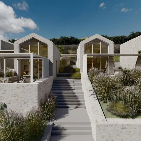 Το Eks Mani Peninsula Retreat παρέχει δωρεάν WiFi, κλιματισμό, εξωτερική πισίνα και βεράντα. Βρίσκεται στον Πύργο και απέχει 2,5 χλμ από Παραλία Πανταζή και 43 χλμ από Σπήλαια Διρού.
