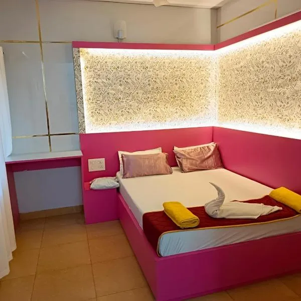 Hotel Rezo's se encuentra en Baga, a 3 min a pie de Playa de Baga, y ofrece habitaciones con vistas a la ciudad y wifi gratis. Hay bañera de hidromasaje y servicio de alquiler de coches.