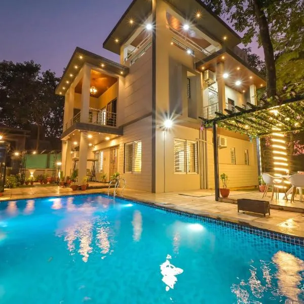 Το Aviran Villa 5BHK - Jacuzzi House βρίσκεται σε Lonavala και διαθέτει δωρεάν WiFi και θέα στην πόλη. Έχει επίσης εξωτερική πισίνα, κήπο και βεράντα.