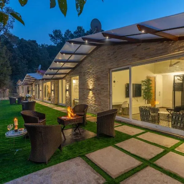 Jim & Holmes Resort & Luxury Residences in Jim Corbett National Park está en Rāmnagar y dispone de vistas a la montaña, piscina de temporada al aire libre, jardín, salón de uso común, terraza y...